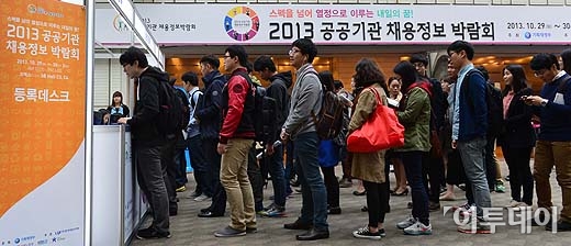 2013 공공기관 채용정보박람회가 29일 오전 서울 강남구 삼성동 코엑스에서 열렸다. 이른 아침부터 구직자들로 채용박람회가 붐비고 있다. 이번 박람회에는 97개 공공기관의 인사담당자가 참석해 직접 채용을 상담하고 정보를 제공한다. 방인권 기자 bink7119@붐비는 공공기관 채용정보 박람회