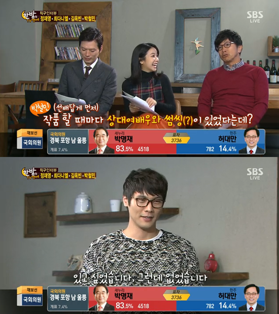 30일 방송된 SBS ‘한밤의 TV연예’에서는 영화 ‘열한시’에 출연하는 배우 최다니엘, 정재영, 김옥빈, 박철민 등이 출연해 직구 인터뷰를 진행했다.