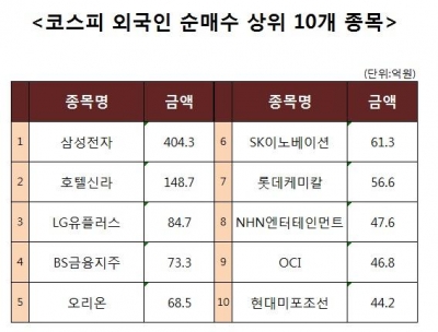 [코스피 외국인 순매수 상위 10개 종목]