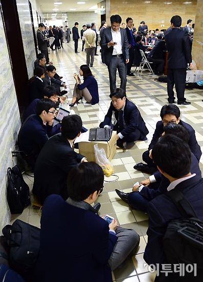 [포토]국정감사 마지막 날, '국회 복도에 앉은 공무원들'