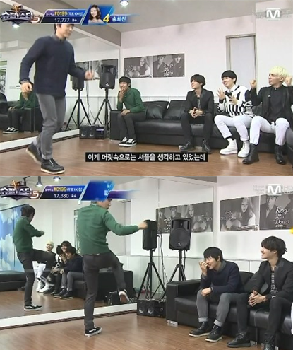 특히 샤이니는 이들에게 춤을 춰보라고 제안해 눈길을 끌었다. 박재정은 먼저 춤을 시작했다. 양손으로 총을 쏘는 일명 총알춤이었다. 박재졍의 춤을 지켜보던 샤이니는 폭소를 연발했다. 이어진 박시환은 어정쩡한 자세로 요상한 춤을 선보였다. 이에 샤이니는 “괜찮다. 저희 오디션 때도 그렇게 하는 분들 있다”고 독려했다.