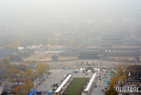 가을비가 내린 후 3일 서울 광화문 프레스센터에서 바라본 서울 도심이 짙은 안개로 덮여있다. 기상청은 내일 아침 내륙 일부 지역에 짙은 안개가 끼는 곳이 있어 교통안전에 유의가 필요하다고 예상했다. 노진환 기자 myfixer@