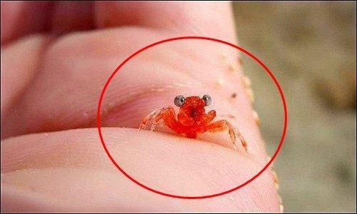 이 게시물에는 성인 남성 엄지손톱 크기 정도의 빨간 게의 모습이 담겨 있다. 게의 양 옆엔 검은 색 눈이 달려 있고 입을 벌리고 있어 깜짝 놀라고 있는 모습 같다는 게 네티즌들의 반응이다.
