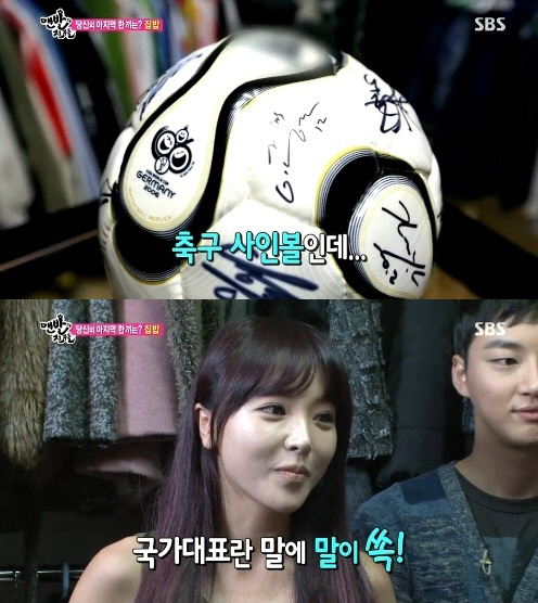 이날 '맨친' 멤버들은 홍진영의 집을 둘러보던 중 사인이 가득 담긴 축구공을 발견해 홍진영에게 물었다. 하지만 사인볼과 관련해서는 언급을 피했다.