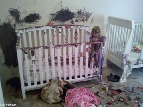 사진에는 온 집안을 물감으로 칠한 아기 모습이 담겨 있다.