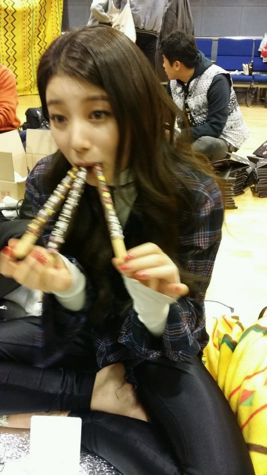 수지는 11일 자신의 트위터에 "1111"이라는 글과 함께 한 장의 사진을 게재했다. 공개된 사진 속에는 양반다리를 한 채 바닥에 주저앉아 빼빼로 3개를 한 입에 먹는 수지의 모습이 담겨있다.