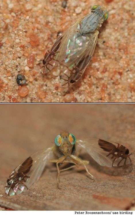 아랍에미리트 자예드 대학교의 한 생물학자가 발견한 것으로 알려진 이 초파리는 생존 때문에 개미 모양의 무늬를 갖게된 것으로 알려졌다.