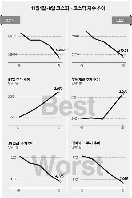 11월 둘째 주(4~8일) 코스닥지수는 5거래일 연속 하락세를 보이며 3% 넘게 빠졌다.