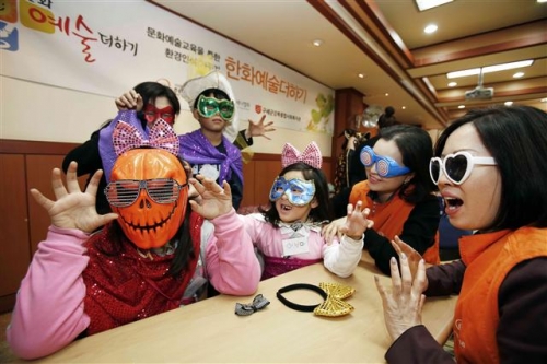 한화그룹은 12일 한국메세나협회와 함께 구세군강북종합사회복지관에서 ‘미래의 특명, 지구를 지켜라!’라는 주제로 연극 문화예술교육을 진행했다고 밝혔다. 그동안 한화예술더하기를 통해 배운 미술, 디자인 등을 활용해 복지관 어린이들이 직접 연극을 구현한 것이다.