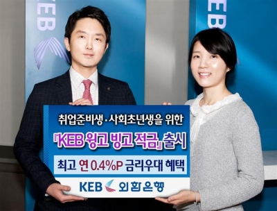 외환은행은 13일 취업준비생 및 사회초년생 등 10~20대 고객을 대상으로 한 ‘KEB 윙고 빙고 적금’을 출시했다.