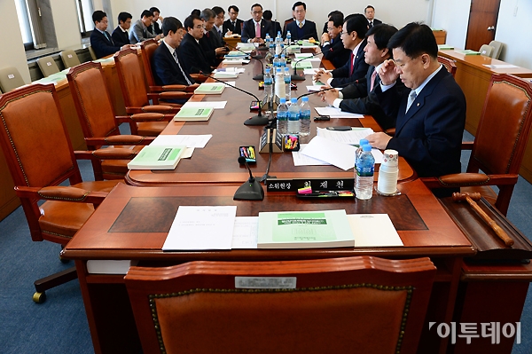 민주당이 인사청문회를 제외한 상임위 활동에 참여하지 않고 있는 13일 오전 국회 예결위 결산심사소위원회에서 새누리당 의원들과 정부부처 공무원들이 야당 의원들을 기다리고 있다. 노진환 기자 myfixer@