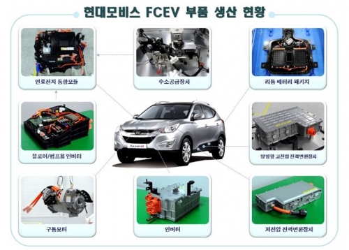 이에 현대모비스는 수소연료 전지차 부품을 개발해 세계 최초로 양산되는 투싼ix 수소연료 전지차에 장착시켰다. 이 자동차는 북유럽 4개국 수소연료 전지차 시범보급 차량에 선정됐으며 현재 15대 가량이 덴마크 코펜하겐시의 관용차로 보급되고 있다. 또 지난 1월 벨기에 브뤼셀 모터쇼에서 진행된 ‘2013 퓨처오토 어워드’에서도 1위로 선정돼 기술력과 상품성을 인정받았다.