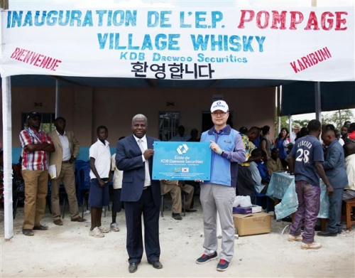 2011년에는 임직원 20여명이 참여한 가운데 아프리카 콩고민주공화국(DR 콩고) 정부의 권유지역인 킨사샤(Kinshasa) 주의 멘카오(Menkao)마을과 반둔두(Bandundo) 주의 몽가타(Mongata)마을에서 트랙터 및 쇠스랑 등 농기구와 식량을 기증하고, 마을주민과 함께 주변 주요 도로를 포장하는 봉사활동을 진행했다. 2012년에는 DR콩고의 루붐바시(Lubumbashi) 지역에 학교시설이 부족해 교육기회마저 제대로 가지지 못하는 아이들에게 교육기회를 제공하기 위해 세계식량기구(WFP)와 함께 400여 명의 학생을 수용할 수 있는 학교를 기부하고 ‘KDB대우증권 학교’라 이름짓고 학용품을 전달했다.