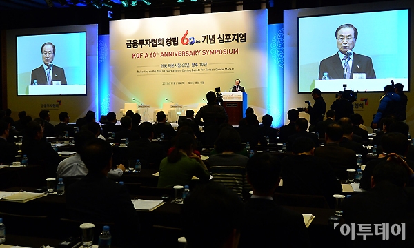 박종수 금융투자협회 회장이 21일 오전 소공동 웨스틴 조선호텔에서 열린 금융투자협회 창립 60주년 기념 심포지엄에서 개회사를 하고 있다. 노진환 기자 myfixer@