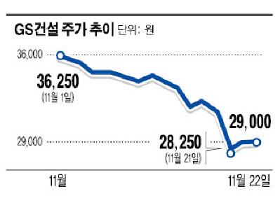 지난 20일 오전에 서울 여의도 증권가엔 ‘GS건설이 해외사업장에서 추가로 대규모 손실을 냈으며, 내년에 부도가 날 가능성이 있다는 루머가 퍼졌다. 이에 같은 날 GS건설은 전일 대비 8.06%(2500원) 떨어져 2만8500원에 거래를 마쳤다. 부도설 루머로 인해 전일 3.73% 떨어진 주가하락폭을 더 넓히게 됐다.