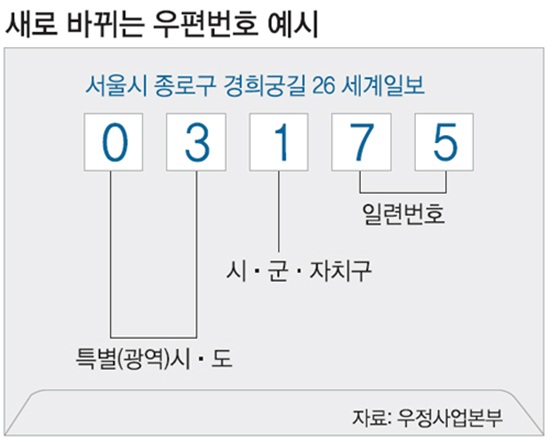 한편, 우정사업본부는 다음달 전국의 도로명 주소별 새 우편번호 내역을 공고할 계획이다.
