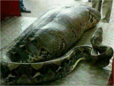 해당 사진이 게재된 한 사이트에서는 이 사진이 인도에서 촬영됐고, 잠자는 술꾼을 삼킨 것이라는 의견이 제기됐다. 또 다른 곳에서는 "뱀이 삼킨 것은 이번 여름, 남아프리카 더반시 북부의 한 여성"이라면서 "사진은 리포터가 찍은 것"이라고 전했다.