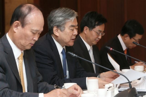 조양호 전국경제인연합회 경제정책위원회 위원장은 29일 서울 중구 소공동 롯데호텔에서 김동연 국무조정실장을 초청해 개최한 ‘경제정책위원회’에서 인사말을 하고 있다. 이채욱 CJ 부회장(사진 왼쪽부터), 조양호 위원장, 김동연 국무조정실장, 이승철 전경련 상근부회장 등 위원 22명이 이 자리에 참석했다.