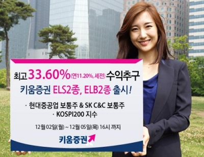 키움증권은 2일부터 5일까지 나흘간 주가연계증권(ELS) 2종 및 주가연계파생결합사채(ELB) 2종을 공모한고 2일 밝혔다.