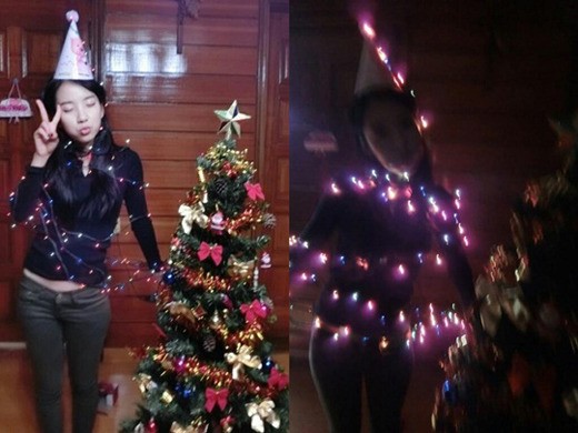 또 트리의 전구에 불을 켜놓은 상태에서도 사진 한 컷을 찍어 자신이 인간트리가 됐음을 팬들에게 알렸다.