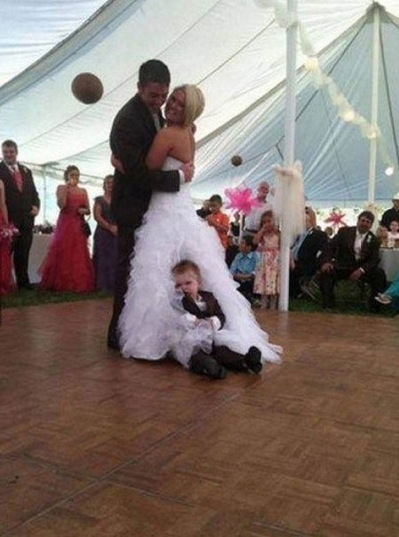 턱시도를 차려입은 이 아이는 질투라도 하듯 신부의 웨딩드레스자락을 잡고 심통이 난 표정을 짓고 있어 웃음을 자아낸다.
