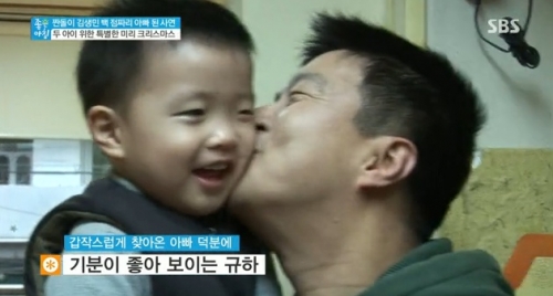 이날 김생민은 아들 규하 몰래 어린이집 현장을 찾았다. 김생민은 규하를 발견하자마자 뽀뽀세례를 퍼붓고 행복한 시간을 가졌다.