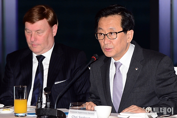 최수현 금융감독원장이 3일 오전 여의도 콘래드 호텔에서 열린 외국계 금융사 최고경영자들과 조찬간담회를 갖고 모두발언을 하고 있다. 노진환 기자 myfixer@