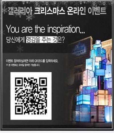 이벤트는 갤러리아백화점 홈페이지와 갤러리아 블로그 등에 게재된 QR코드를 통해 모바일로만 참여할 수 있다. QR코드를 입력해 자신의 삶에서 영감을 주는 사람이나 대상의 사진과 사연을 등록하면 된다.