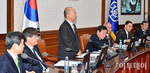 문형표 신임 보건복지부 장관이 3일 오전 서울 세종로 정부서울청사에서 열린 국무회의에 참석해 인사를 하고 있다. 방인권 기자 bink7119@