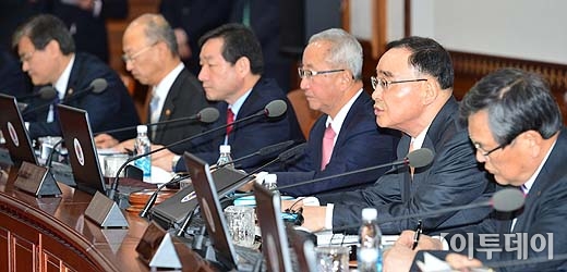 정홍원 국무총리가 3일 오전 서울 세종로 정부서울청사에서 열린 국무회의를 주재하고 있다. 방인권 기자 bink7119@
