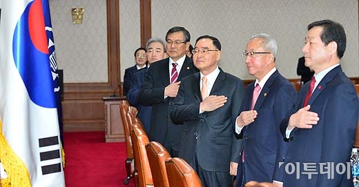 [포토]국민의례하는 정홍원 국무총리와 국무위원들
