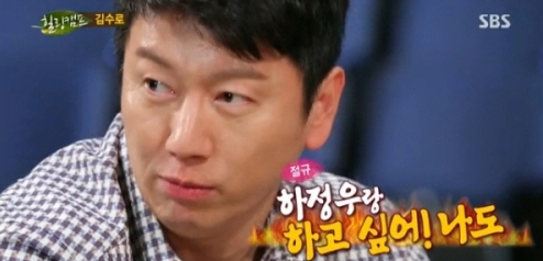 김수로는 2일 방송된 SBS ′힐링캠프, 기쁘지 아니한가′에서 충무로 대세로 하정우를 꼽았다.