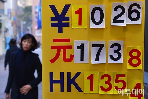 원엔 재정환율이 5년여 만에 가장 낮은 수준으로 가파르게 하락하면서 수출기업들이 바짝 긴장하고 있다. 3일 오전 서울 명동 사설 환전소 앞 거리에는 엔저의 영향으로 일본인 관광객들이 대폭 줄어 한산한 모습을 보이고 있다. 방인권 기자 bink7119@