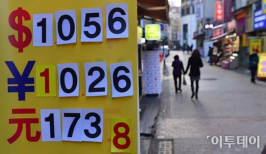 원엔 재정환율이 5년여 만에 가장 낮은 수준으로 가파르게 하락하면서 수출기업들이 바짝 긴장하고 있다. 3일 오전 서울 명동 사설 환전소 앞 거리에는 엔저의 영향으로 일본인 관광객들이 대폭 줄어 한산한 모습을 보이고 있다. 방인권 기자 bink7119@