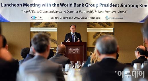 김용 세계은행 총재가 3일 오후 서울 남산 그랜드하얏트호텔에서 열린 기업인과의 간담회에서 '세계은행과 한국'이란 주제로 강연을 하고 있다. 이날 김용 세계은행 총재는 개발도상국 지원과 개발에 국내 기업들의 적극적인 동참을 당부했다. 방인권 기자 bink7119@