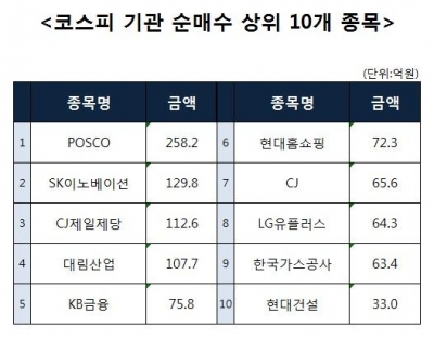 [코스피 기관 순매수 상위 10개 종목]