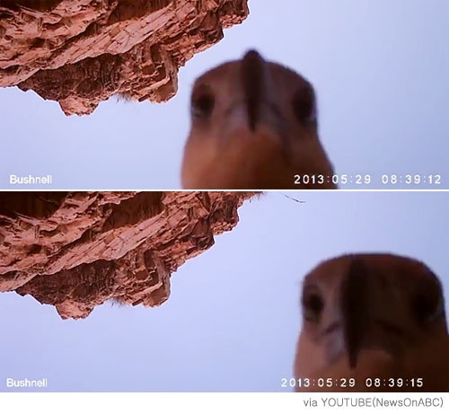그런데 최근 최초 설치 장소에서 100km 떨어진 메리 강에서 카메라가 발견된 것이다. 카메라 속의 영상을 살펴본 결과 카메라를 훔친 것은 바로 독수리였음이 밝혀졌다.