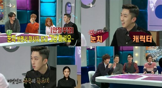 189cm에 이르는 훤칠한 키와 하얀 피부, 깔끔한 마스크의 소유자인 슬리피는 그 동안 무대 위에서 세련된 포스와 절제된 카리스마로 시크한 남자의 매력을 어필해 왔던 것과는 달리 “예능은 처음이라 며칠 전부터 잠까지 설쳤다”고 약한 모습을 보였다. 그러면서도 ‘뭐든 하겠다, 해야만 한다’는 결연한 의지를 불태우며 지드래곤, 버벌진트, 개코, 빈지노 등의 성대모사를 연이어 쏟아내 마지막까지 큰 웃음을 선사했다.