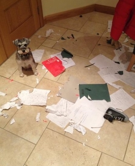 '숙제를 먹은 개' 2탄의 주인공은 슈나우저로 숙제를 먹은 것으로도 모자라 방안을 온통 어지럽혀 놓았다.