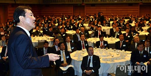 신제윤 금융위원장이 6일 오전 서울 중구 남대문로 대한상공회의소에서 열린 조찬간담회에서 ‘창조금융: 금융과 실물의 융합성장’이란 주제로 강연을 하고 있다. 방인권 기자 bink7119@