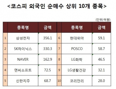 [코스피 외국인 순매수 상위 10개 종목]