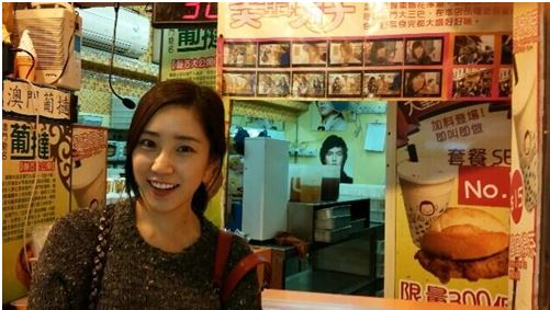 공개된 사진 속 최희는 마카오에 위치한 에그타르트 가게에서 인증샷을 찍고 있다.