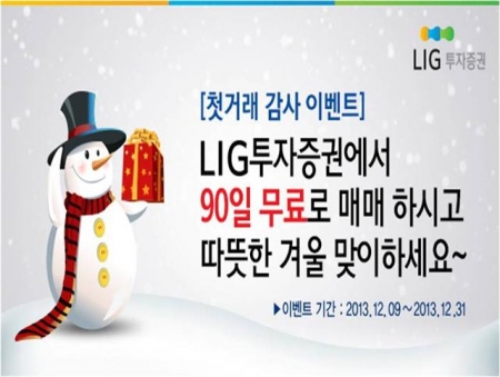 이벤트 내용은 오는 31일까지 LIG투자증권 제휴은행을 방문해 주식 또는 선물옵션계좌를 신규(주민번호기준 최초)로 개설하고, 1회 이상 매매한 고객 선착순 100명에게 무릎담요와 핫팩을 함께 제공하는 것이다.