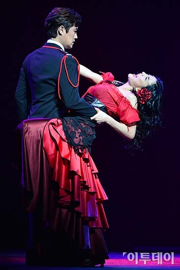 뮤지컬 '카르멘'은‘카르멘’을 둘러싼 네 남녀의 지독하고 강렬한 사랑을 현대적인 감각으로 재해석한 작품으로 2014년 2월 23일까지 LG아트센터에서 공연된다. 방인권 기자 bink7119@