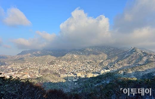 서울ㆍ경기지역에 많은 눈이 내린 11일 오전 서울 북악스카이웨이에서 바라본 도심이 눈에 쌓여있다.
