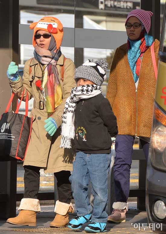 [포토]한국 날씨 추워요. 두터운 옷 입은 외국인 관광객 가족