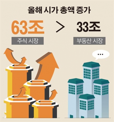 대표적 자산 증식 수단으로 꼽히는 주식과 부동산시장 중에서 올해 시가총액 성장의 승자는 주식이었다.