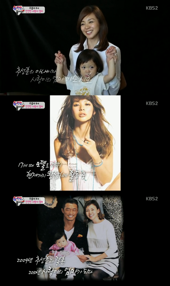 야노시호는 15일 방송된 KBS 2TV '해피선데이-슈퍼맨이 돌아왔다'에서 추성훈의 아내이자 추사랑의 엄마로 살아가는 일상을 전했다.