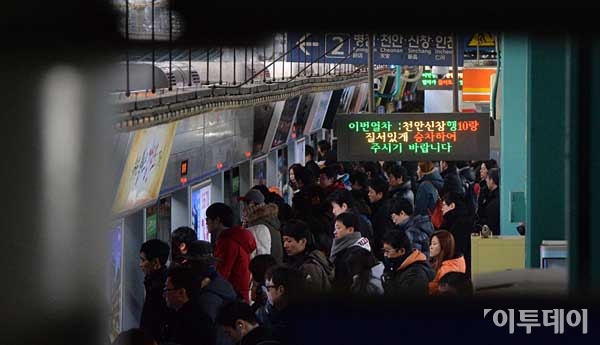 철도노조 파업 8일째인 16일 오전 서울 구로구 수도권 전철 1호선 신도림역에서 출근길 시민들이 전철을 기다리고 있다. 코레일은 파업이 장기화됨에 따라 열차 운행의 안전 등을 고려해 17일부터 KTX 열차운행 횟수를 10~12% 줄인다. 수도권 전동열차는 16일부터 주중 2천 109회에서 1천 931회로 8.4%, 무궁화호도 10회 감축운행한다. 최유진 기자 strongman55@