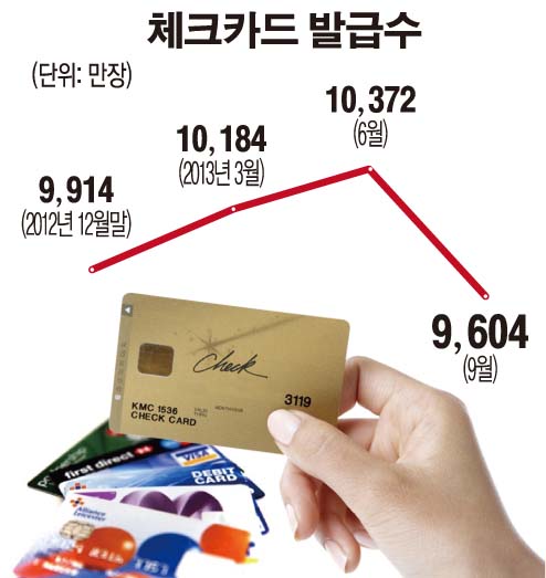전체 체크카드 발급 수 9604만장…전년 말 대비 310만장 감소